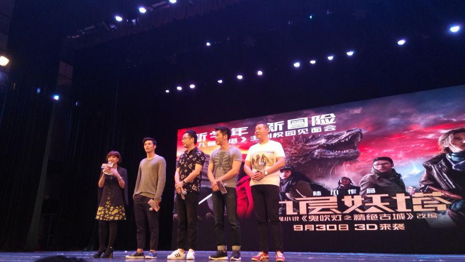 开幕式上,现场的领导嘉宾先后致辞。随后一同按亮水晶启动灯,电影节正式开幕!随后,会场放映了本届大学生电影节开幕影片《九层妖塔》。该片是由乐视影业出品发行的3D奇幻冒险动作大片,根据小说《鬼吹灯之精绝古城》改编,该片主创陆川导演,演员凤小岳、李晨和冯粒在放映后出席现场见面会,与广大学子近距离互动交流,他们受到了热烈的追捧。这部大片将于9月30日全国正式上映,因此今天在场的所有观众可以说是先睹为快了。