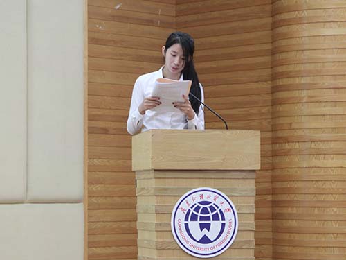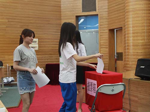 本网讯 2015年6月11日晚,广东外语外贸大学中文学院第八次团员、学生代表大会于图书馆负一楼正式举行。中文学院党委副书记李江,辅导员曾超文、王菁、王秋萍等出席大会。大会最终投票选举出了中文学院第八届第一任团委学生会委员。
