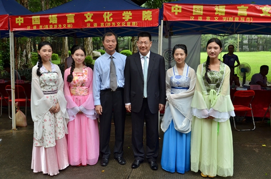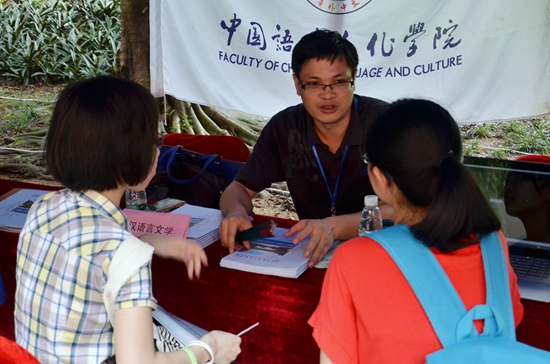 我院院长刘小平、党委书记李和民、副院长魏慧斌、副院长刘海玲、党委副书记李江以及汉语言文学系主任朱志刚、对外汉语系主任严修鸿、中国文化系主任王焱等均出席本次开放日,亲自“坐镇”我院摊位,为家长学生解疑答惑。