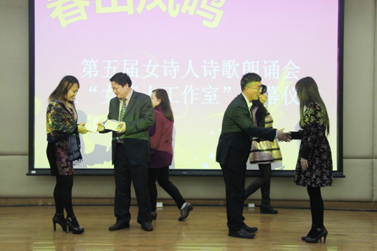 随后温洋与刘建达为“女诗人工作室”揭牌,刘建达为5位诗人颁发了导师聘书。女诗人们也送上个人诗集供同学们阅读学习。