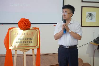 共同为中文学院创新创业实训基地揭牌