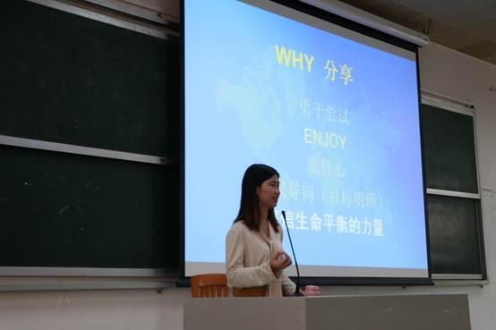 梁珊珊同学则通过学业和课外活动两方面分享自己获得国奖的历程。“学习本就是一个不断进步的过程,我们只要对自己充满信心,就有成功的可能。”梁珊珊三年来不断进步的成绩就是对这句话最好的印证。她建议同学们尽可能地参加一些课外活动和比赛,勇于尝试并享受其中,同时不要害怕承担责任,责任正是能让我们获得成长的助推器。