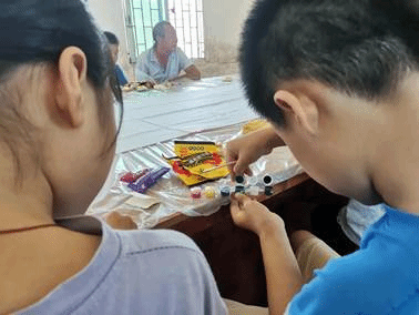 听完老党员分享后,小朋友们有许多感想,他们将自己的想法画在雪白的画布上。他们三三两两聚在一起,绘画着祖国的大好河山、宁根的秀丽风景、欢乐的校园生活。