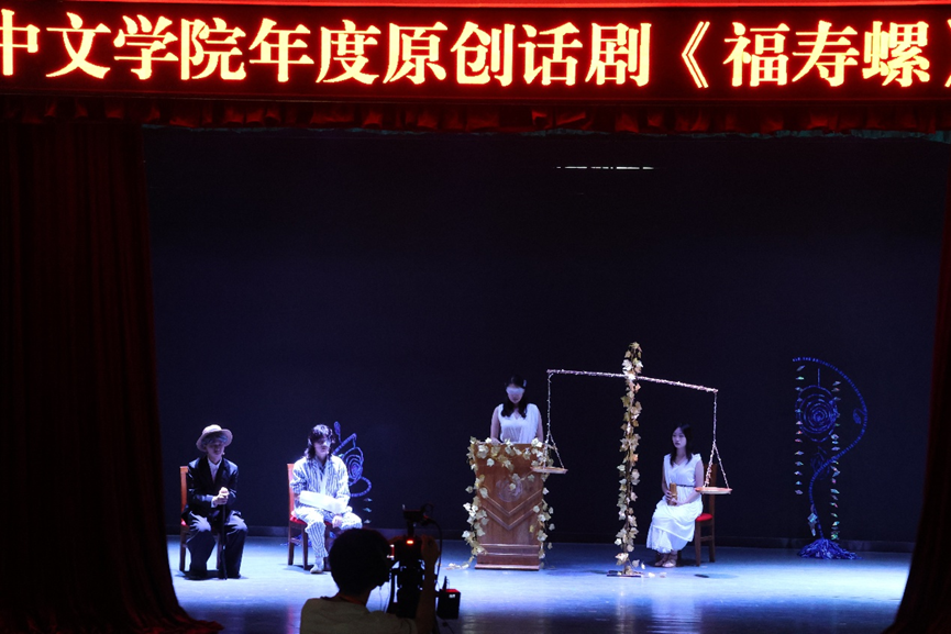 此次《福寿螺》公演的圆满落幕,不仅为中文学院20周年院庆注入了鲜活的人文气息,更以艺术为桥梁,连接起师生对人生价值的深度思考,成为学院创意写作实践、文化建设与育人成果的一次精彩展示。