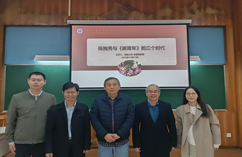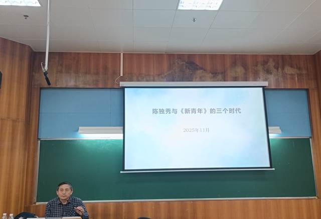 本网讯 2025年11月21日上午,中文学院院庆系列讲座第16讲在白云山校区第七教学楼107室举行。本次讲座邀请河南大学关爱和教授作题为《陈独秀与<新青年>的三个时代》的专题讲座,讲座由陈恩维教授主持,70余名师生参会。