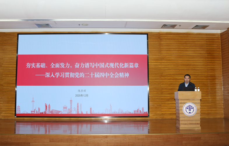 陈彦辉围绕学习宣传贯彻习近平总书记重要讲话重要指示精神和党的二十届四中全会精神,以“夯实基础、全面发力,奋力谱写中国式现代化新篇章——深入学习贯彻党的二十届四中全会精神”为主题,作了深入宣讲和全面解读。他指出,师生们要深刻领会党的二十届四中全会重大意义,准确把握“十五五”时期经济社会发展的指导思想、重大原则、主要目标、战略任务和根本保证,充分认识“十四五”时期党和国家事业取得新的重大成就。要全面对标党中央“十五五”规划建议部署,认真落实学校规划安排,凝聚干事创业合力,为推动学校事业高质量发展贡献力量。
