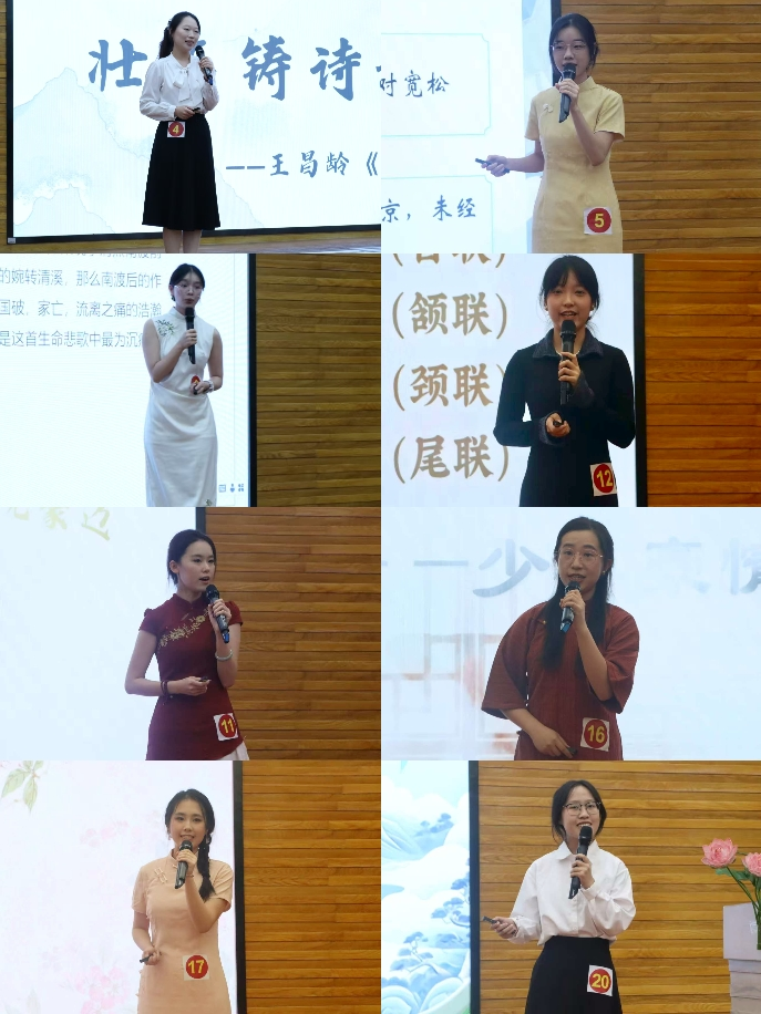 参赛选手认真准备,反复打磨,精益求精,经过初赛选拔,最终进入决赛阶段。决赛特邀暨南大学文学院徐国荣教授、广东外语外贸大学新闻与传播学院李峻岭教授、中国语言文化学院左岩教授、吴肖丹副教授担任评委。广东外语外贸大学云山工作室首席专家戴建业教授、中国语言文化学院党委副书记吴俊峰老师、副院长彭淑莉副教授、团委书记罗俊芬老师等嘉宾也出席本次活动,与在场师生共同见证了这场诗意盎然的交流与竞技。