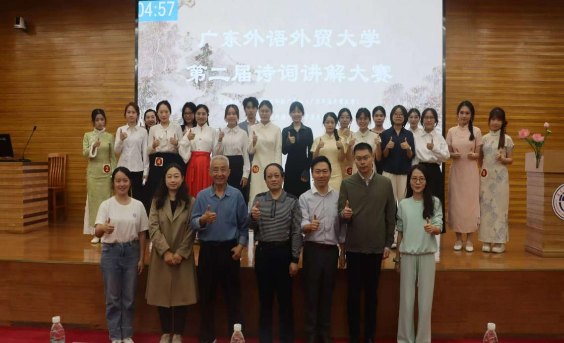 本次诗词讲解大赛加深了广外学子对于中华优秀诗词的认识与理解,也给广外学子提供了一次宝贵的古今对话的机会。这不仅激励着更多广外学子深入挖掘中华经典诗词中所蕴含的文学与生活艺术,也推动中华诗词在广外掀起一番浪潮,为传承和发展中华优秀传统文化贡献出广外力量。