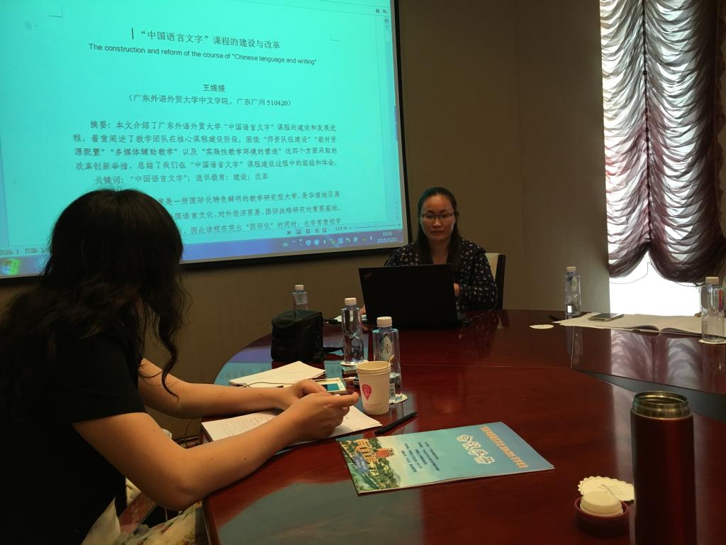 我校中文学院汉语国际教育中心王媛媛副教授应邀参加了本次会议,并宣读了论文《“中国语言文字”课程的建设与改革》,该文从教学目标定位、教学内容调整、教学方法改革、师资队伍建设、教学资源配置等几个方面,全面展示了我校“中国语言文字课”近几年的建设与发展情况。王媛媛副教授还利用参会机会向与会专家学者介绍了中文学院汉语国际教育系和汉语国际教育中心的发展情况。