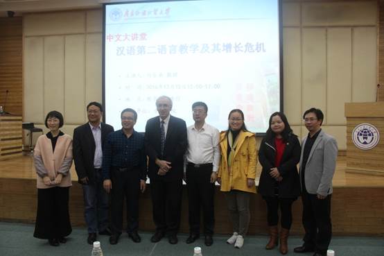 本网讯 12月15日下午三点,世界汉语教学学会副会长白乐桑教授在北校图书馆报告厅召开主题为“汉语第二语言教学及其增长危机”的讲座。白乐桑从学科认识论角度出发,对汉语国际教育问题进行探讨,并向在场师生分享自己关于国际汉语教育增长危机的八点思考。我院党委书记李和民,副院长魏慧斌等出席本次讲座。