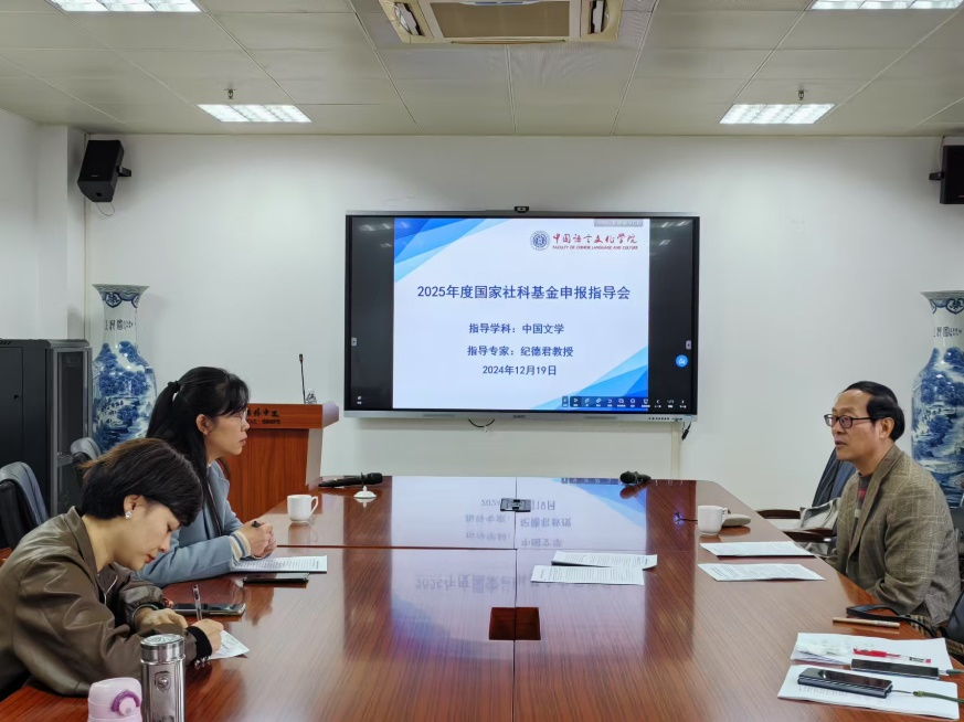 本网讯 12月18日下午,中文学院在北校区第七教学楼408室举办2025年度中国文学高层次项目申报指导会,会议由陈恩维院长主持,广州大学纪德君教授应邀作申报指导。中文学院罗长青副院长和多名中青年教师参与。