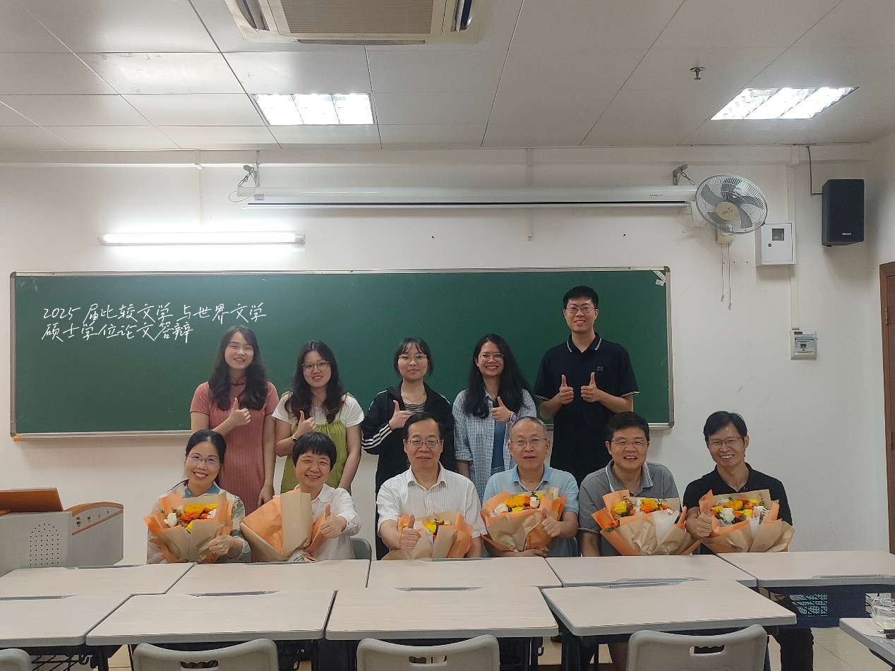 2025年5月15日14:30,广东外语外贸大学中国语言文化学院比较文学与世界文学专业2025届硕士学位论文答辩于北校区第七教学楼301室举行。答辩委员会由暨南大学文学院黄汉平教授担任主席,委员还包括本校中国语言文化学院肖四新教授、林玮生教授、邱业祥教授、李日容副教授及李安副教授。