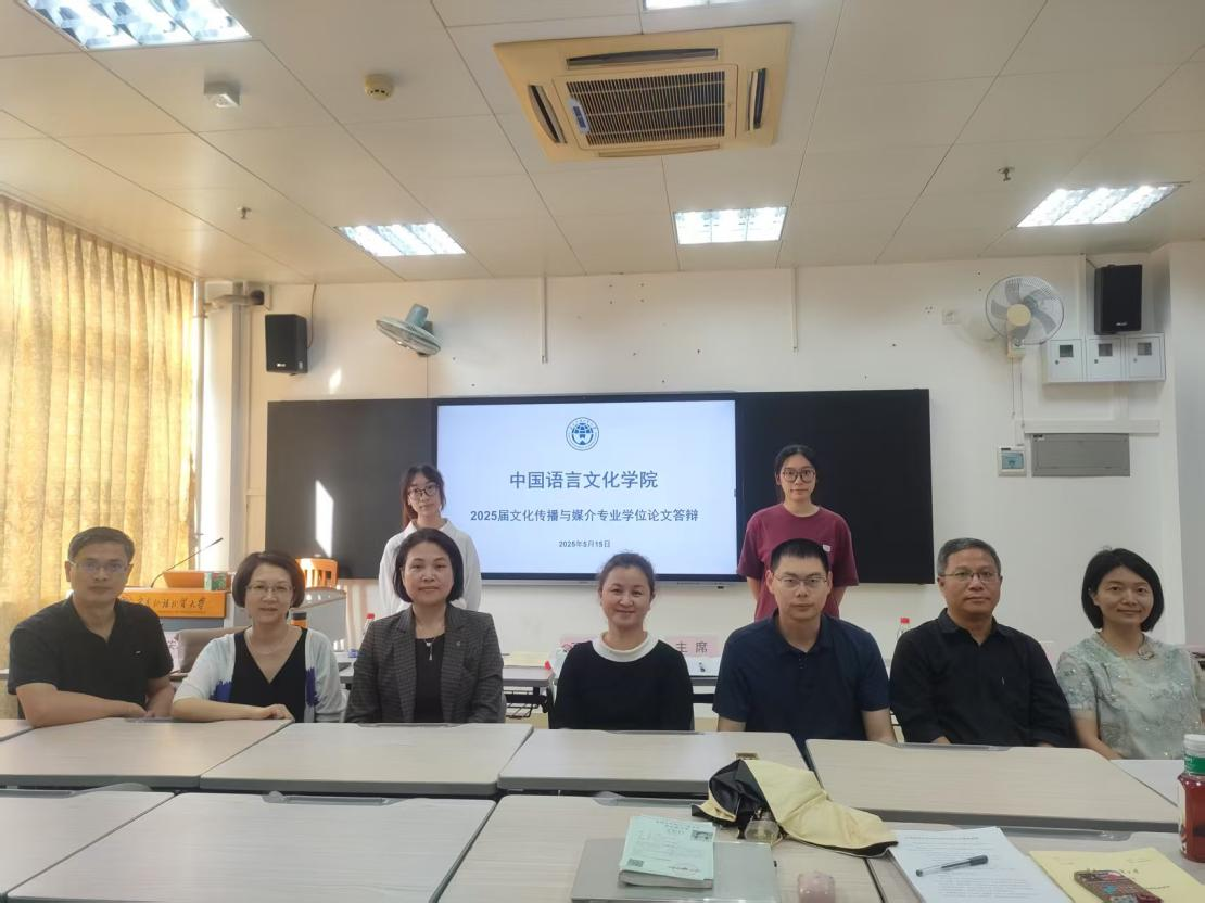 2025年5月15日下午,2025届文化传播与媒介专业硕士学位论文答辩报告会在北七教305室举行。段莉副教授担任本次答辩主席,答辩委员有袁瑾教授、何明星教授、王焱教授、左岩副教授和朱志刚副教授。2022级文化传播与媒介专业学生王俞茜和陈凌枫参与本次答辩。2023和2024级文化传播与媒介专业学生列席旁听。