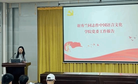 本网迅 6月8日下午,我院在白云山校区七教水上报告厅举行中国共产党广东外语外贸大学中国语言文化学院委员会党员大会,会议审议通过了党委书记谢秀兰代表学院党委所作的工作报告,选举产生了学院新一届党委委员。学院全体党员出席本次大会,会议由学院党委副书记吴俊峰主持。