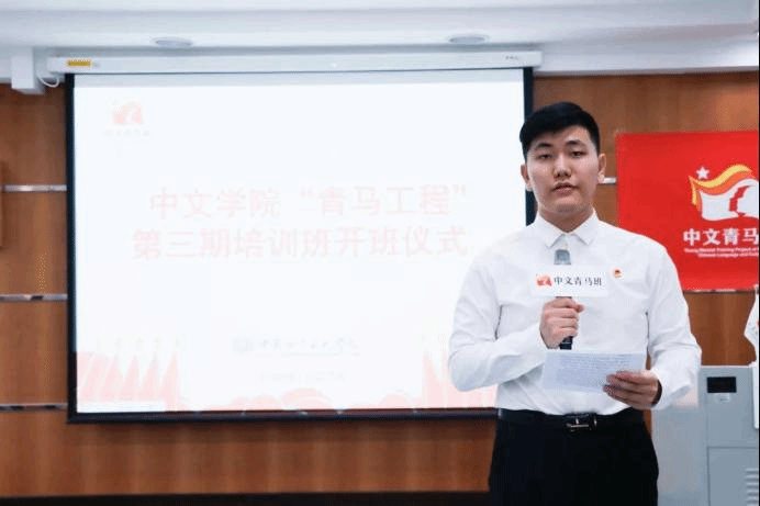 本网讯 11月14日下午,我院在MBA教育中心305教室开展中国语言文化学院“青马工程”第三期培训班开班仪式及第一课。本次应邀出席的嘉宾有校团委副书记涂颖,学生处副处长叶开,我院党委书记周东兰,我院党委副书记王迪,团委书记杨韬老师,中文青马班导师左岩老师、林炜娜老师、杨帅可老师、王思齐老师、黄丹老师。本次开班仪式由李锦鸿主持。