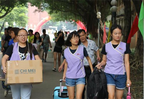 除了二教中庭的定点工作人员,中文团学还派出多名身穿淡紫色团学马甲的迎新志愿者们为新生提供帮助。志愿者们不到六点半就到二教中庭开始准备迎接新生的工作,他们主要在校门、校道、宿舍区设点举牌,随时准备为新生提供接待、问路、咨询、搬行李等志愿服务。志愿者们纷纷表示能参加新生接待工作很荣幸,希望自己能尽最大努力帮助下一届的师弟师妹们。