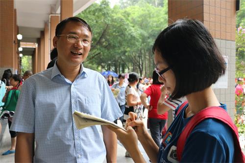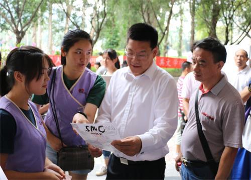 伍方斐、范静静、李江等学院领导的莅临关怀也使注册处的迎新气氛更加浓烈,工作人员更加动力满满。他们在现场翻阅相关迎新文件的同时也不忘与新生们亲切交谈以及对工作人员们表示诚挚的慰问。仲伟合等一行校领导的到来更是掀起全场高潮,听取院长领导们的迎新工作布置后,他带头学院领导与在场同学的亲密合影再度引爆全场。随后至新生宿舍的探访也给新生们带来了意想不到的惊喜。