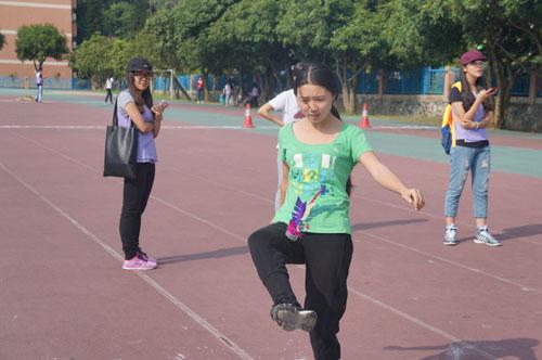 “转呼啦圈比赛”是趣运会里一道特别抢眼风景线。选手们一边转呼啦圈一边跑步,绕过终点的雪糕筒再跑回起点。尽管经过了短暂的练习,大家在赛场上还是状况百出。哨声一响起,大家姿态各异地开始全力狂奔,全然不顾形象。其中当属男生的姿态最扭曲,有把呼啦圈转到脚跟的,有把它转出赛道的,甚至还有一个男生抓着呼啦圈直奔终点,但因为犯规被取消了成绩。男生在此项目上略逊一筹,相比之下,女悍将们却表现得十分出色,获得佳绩。赛果揭晓,文秘1201班的选手们配合得天衣无缝,表现出众,以7秒的绝佳成绩夺得冠军。