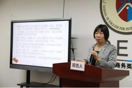 评议人彭萍老师认真聆听了各位报告人的发言,在切实中肯地评价各位报告人的论文的同时,亦结合自己的专业领域翻译,延伸提出富有创意性的见解,在座嘉宾频频点头认同。