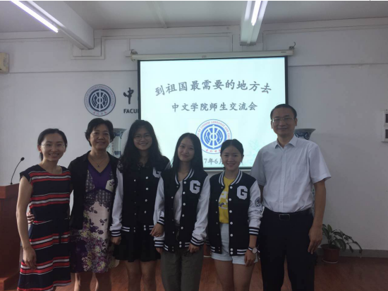 6月23日早上,“到祖国最需要的地方去——中文学院师生交流会”在中文学院422会议室举行。中文学院党委书记周东兰、党委副书记李江、毕业班辅导员辅导员朱倩渝,与会代表包括:研究生支教团的张雅雅同学,西藏灵芝专项计划的李雪瑶同学,美丽中国的覃婷婷同学。