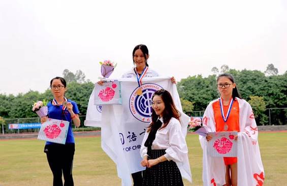 18日,女将陈艳霞在女子400米栏项目中勇夺冠军并打破赛会纪录;潘如霜获三级跳获第2名;王丽雪在跳高比赛中取得第10名的成绩。据悉,因表现优异,运动员潘如霜、陈艳霞获得“优秀运动员”奖。实力所在,实至名归。在全校22个学院中,我院本次运动会总成绩排名第10,由运动员陈艳霞代表我院领取奖杯;我院亦荣获团体体育道德风尚奖中文团学主席何淑仪代表我院领取牌匾。