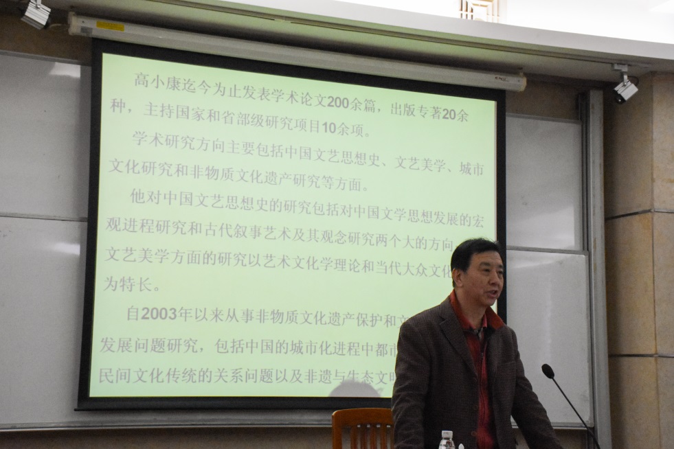 本网讯 2018年1月9日晚上7点,中文学院在三教422会议室召开了中文学院高层次项目第八次指导会。此次指导会的指导专家是南京大学的高小康教授、博士生导师,同时也是上海交通大学城市科学研究院学术委员会副主任,教育部人文社科重点研究基地中山大学中国非物质文化遗产研究中心学术委员。参加指导会的中文学院老师有陈恩维教授、袁瑾副教授、段莉老师和吴肖丹老师。