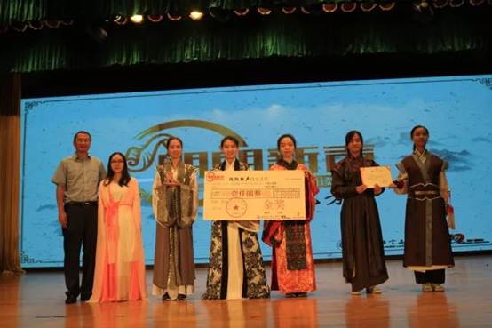 最后,新闻与传播学院系主任李峻岭作为评委代表进行了总结发言。经过紧张的现场计分环节,扶摇队荣获金奖和最佳人气奖,娜一季花开荣获银奖,天阙长歌队荣获铜奖,其余三支队伍获得优秀奖,我院党委副书记李江及评委上台为获奖队伍进行了颁奖并合影留念。