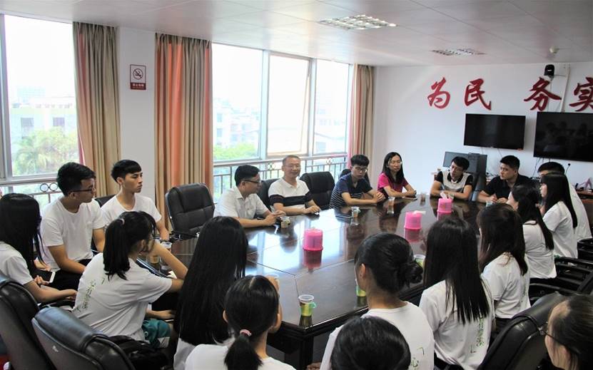 在黎溪镇人民政府,李江副书记一行视察了队伍的工作环境,向队伍赠送慰问品,并亲切询问了挂职队伍的工作及调研活动的开展情况,表达对队员们深切的关怀。黎溪挂职服务队队长对政府和学校的支持和慰问表示感谢并对相关工作进行了汇报。同时,李江副书记也对黎溪镇与我院长期以来的战略合作伙伴关系致谢,寄望我院与黎溪镇进行交流与学习。随后,李江副书记从学校层面及学生层面说明社会实践活动的意义,提出教书育人、社会服务、科学研究、文化创新与传承是高校的四大使命,表明学校特别重视社会服务,并致力于与国家发展和社会建设的机构对接。学校也希望通过社会实践能让我校学生有机会深入了解国情、社情和民情,开拓视野、提升自我。