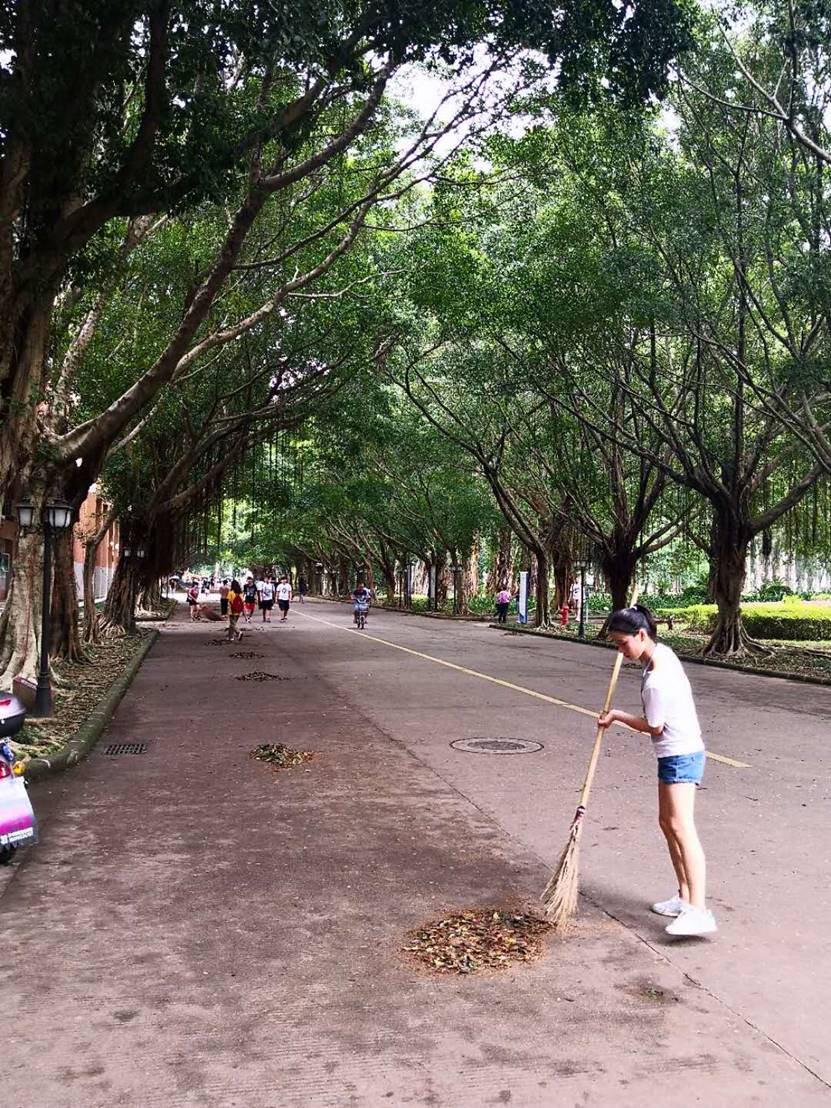 在大家的共同努力下,广外又恢复了她的美丽。校道上少了残枝烂叶,却多了中文人留下的汗水。这一切,值得。因为我们是中文团学!因为我们是中文人!因为我们是广外人!