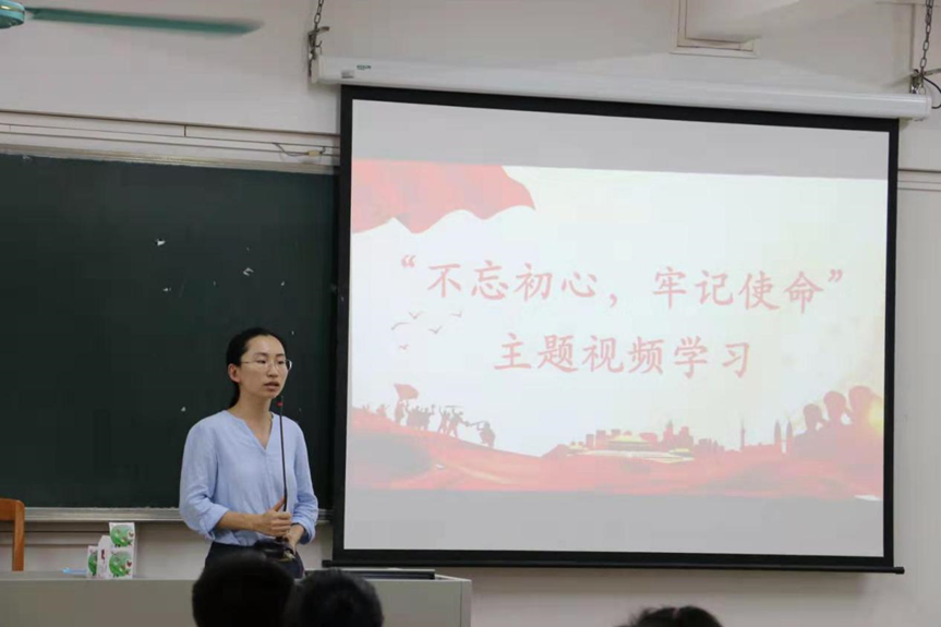 朱倩渝介绍本期发展对象培训班的课程安排、党员发展流程和注意事项以及学院的“不忘初心、牢记使命”主题教育的安排,并进行视频学习。
