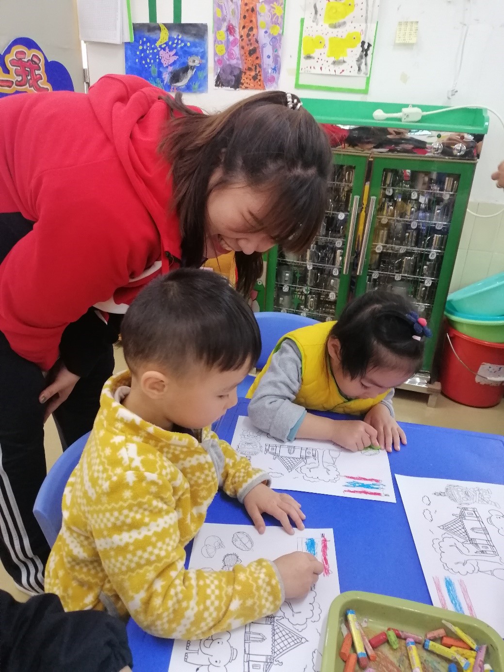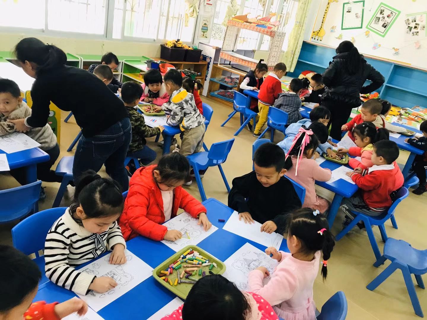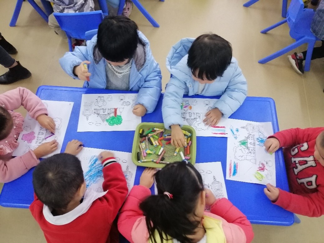小朋友们认真涂色