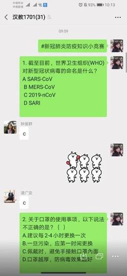 除了讨论对国家安全的认识外,汉教1701班的同学们还在线上举行了为时15分钟的新冠肺炎防疫知识小竞赛,通过有趣的方式有效提高了同学们对防疫知识的认识。