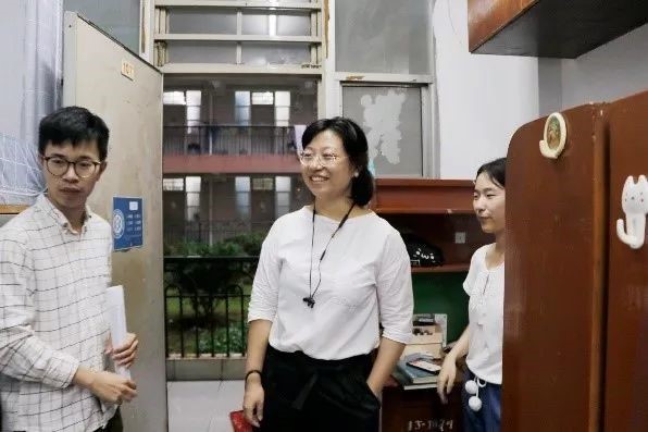 王迪副书记和新生辅导员陈泽帆走访我院新生宿舍。为帮助新生们更好地适应大学生活,老师们仔细查看新生们的住宿条件,与新生亲切交谈。
