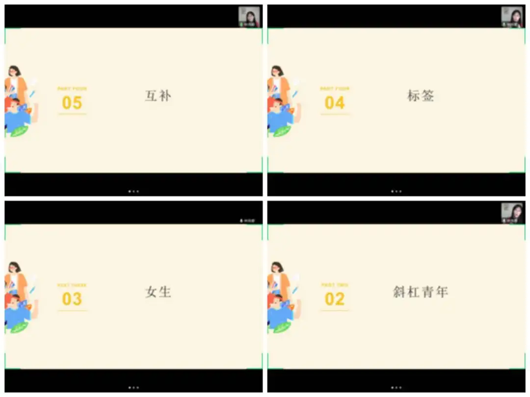会议伊始,林老师笑言:相差三年以上的人都会存在代沟,所以她不给我们介绍经验了,就把她踩过的坑和我们分享一下。其后林老师从英语、斜杠青年、女生、标签、互补五个部分进行阐述。
