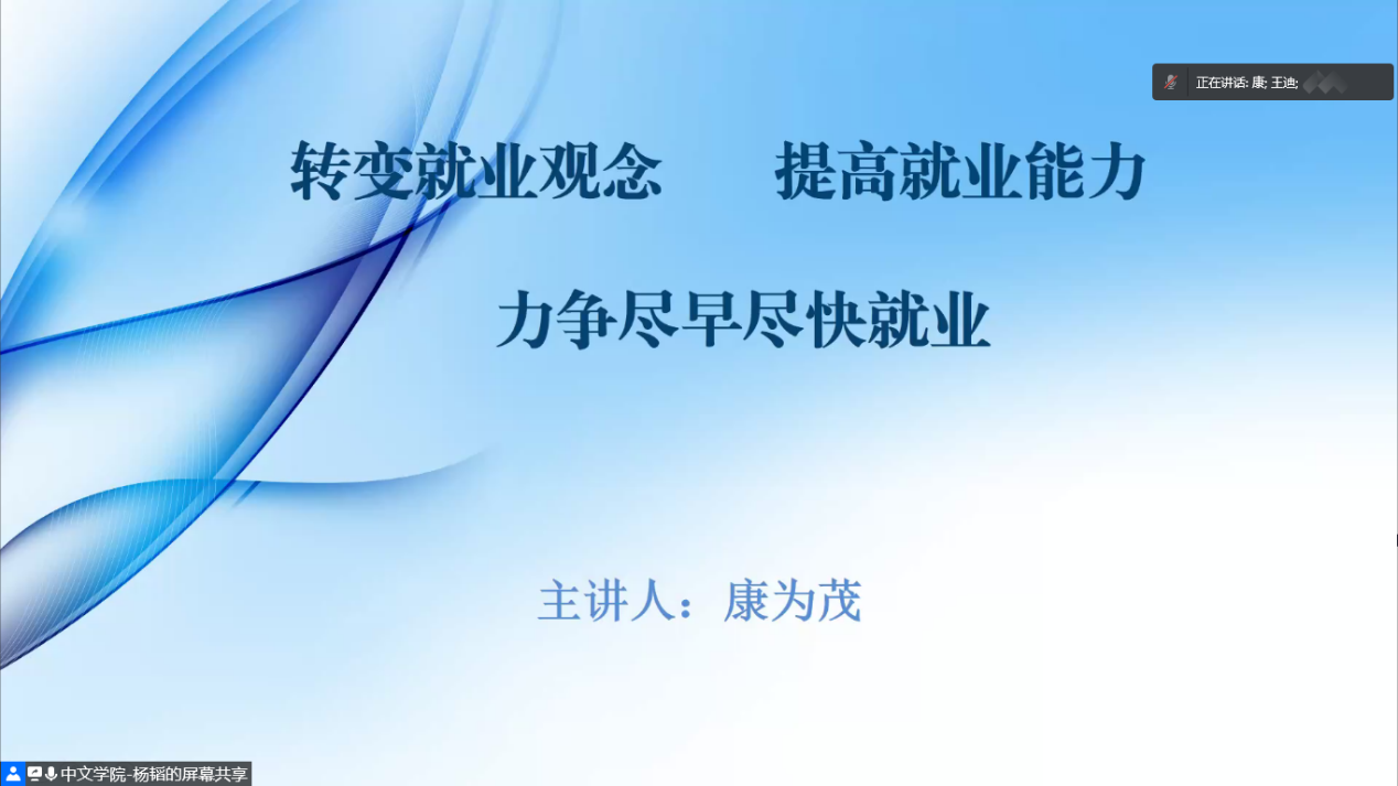 2021年3月19日下午,中文学院2021届毕业生就业形势与政策辅导会在腾讯会议线上举行,本次指导会邀请广外就业指导中心主任康为茂主讲。活动由学院副书记王迪主持,各年级辅导员参加活动和全体毕业生参加。