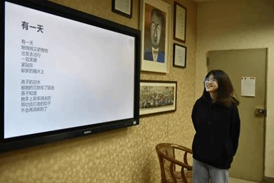 首先,冯娜老师用诗人蓝蓝的《爱我吧……》为同学们展现诗歌中蕴含及容纳的强烈情感;又使用蓝蓝的另一首诗《短句》,让同学们体会到不同诗歌中情感表达的巨大差异。同时,冯娜老师也提醒同学们,在抒发情感的过程中,“死亡”、“命运”这样的大词要恰当使用。