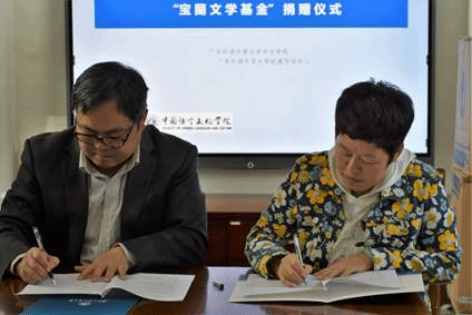 2020年12月28日上午十点,“宝蘭文学基金”成立及捐赠签约仪式在广东外语外贸大学校友事务与合作发展处会议室举行。“宝蘭文学基金”,是中国大陆高校设立的第一支文学基金!也是第一支专门面向创意写作本科人才培养方向、面向所有的文学青少年设立的文学基金。