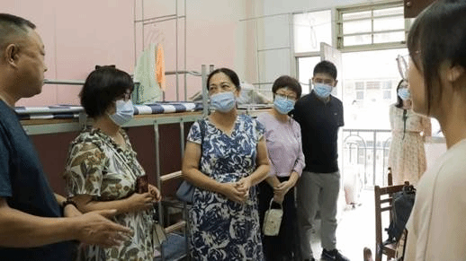 傍晚,我院党委书记周冬兰、党委副书记王迪、辅导员杨韬老师以及朋辈导师们探访新生宿舍,密切关注新生入住情况,并与新生亲切地交谈。
