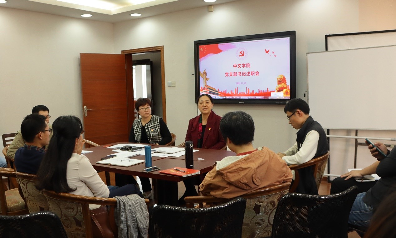 本网讯 2021年11月18日下午,中文学院召开党支部书记述职会,学院党委委员、兼职组织员、全体师生党支部书记及支部委员、系(办)主任出席了本次会议,会议由学院党委书记周东兰主持。