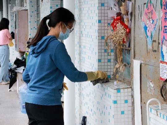 活动开始,同学们在完成清洁材料的分配后分为四组,分别前往4栋及12栋,在保洁阿姨的指导下认真学习清洁知识与技巧。随后的近两小时中,同学们各司其职,使用扫把、抹布和拖把清扫楼道、栏杆与走廊等公共区域。老师们也就宿舍公共区域清洁时间及频率等方面与保洁阿姨进行了详细的交流,对宿舍的生活作息有了更加深入的了解,并诚挚感谢保洁阿姨的劳动与付出。