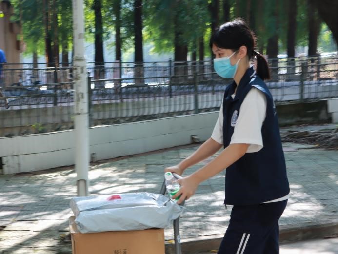我院在入校沿途专门设置了志愿者服务点,为新生入学指引路线,提供帮助。面对行李较多的新生,志愿者们会使用小推车及时提供行李搬运服务,方便新生到达宿舍。