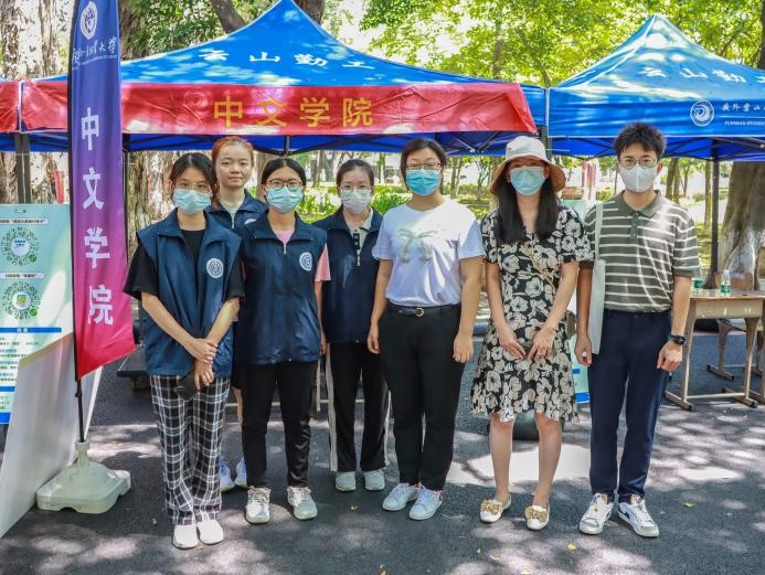 我院在西门校道设立“中文学院返校生接待区”,进行入校后的学院复查等工作。志愿者们在学院摊位等待返校生的到来,并指引返校生在“我在校园”小程序确认返校。同时,另一批志愿者在二教教室中帮助同学们进行签到。截至8月27日,中文学院老生已基本平安返校。