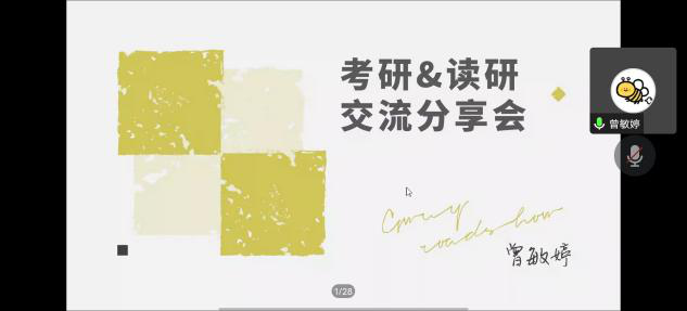 两位师兄师姐的分享干货满满。会后,与会同学踊跃提问,师兄师姐一一解答,线上讨论气氛热烈。同学们纷纷表示受益良多,从中了解到许多关于考研的细节,对自身的考研规划很有帮助。
