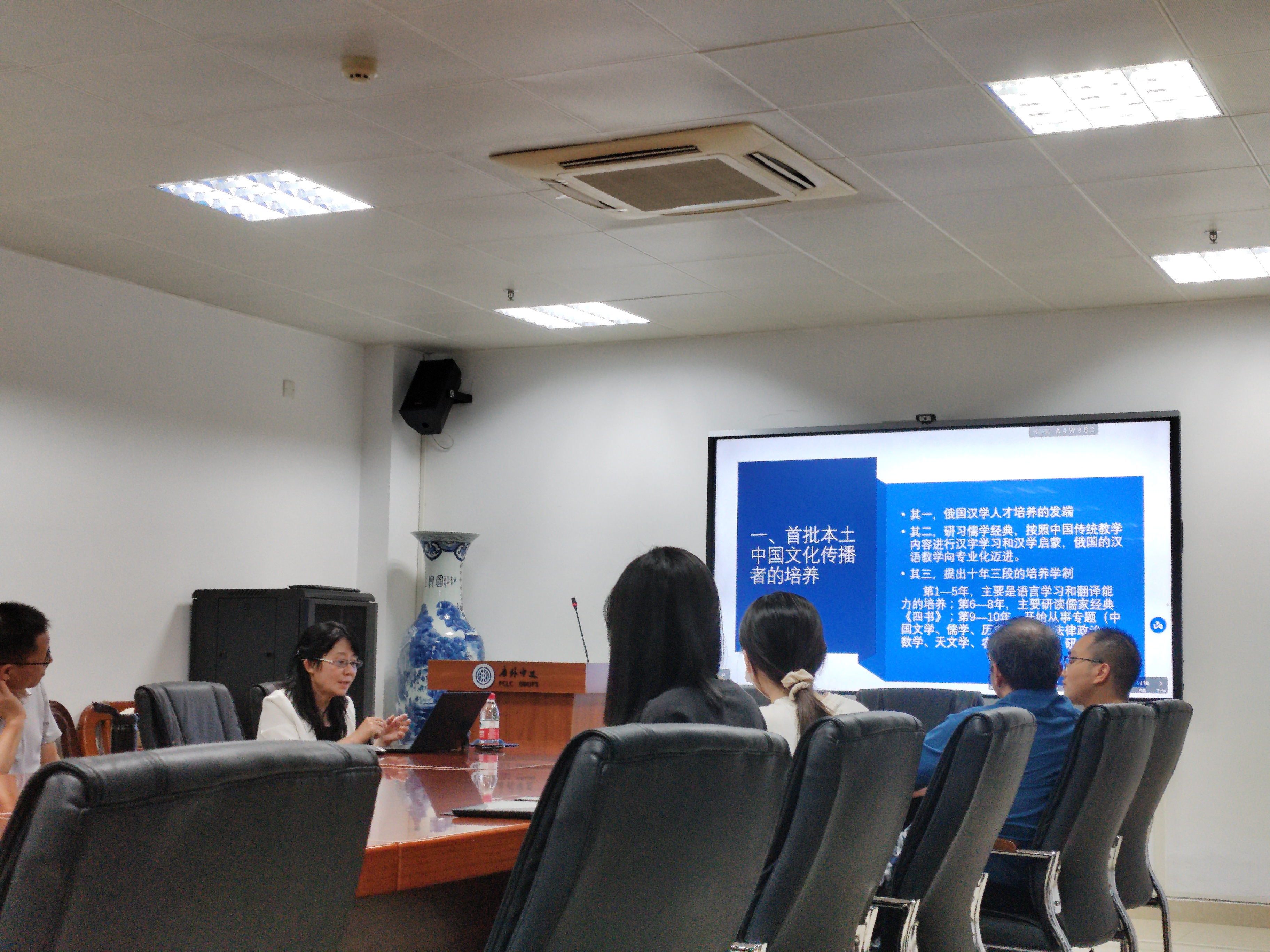 随后,张教授详细介绍了中国文化俄罗斯传播主体谱系中以俄国传教士为传播主体的比丘林时期。首先,此时期俄国开始向中国派出北京传教士团,让传教士们学习满语和汉语之后对中国进行调研,如此一来就完成了首批本土中国文化传播者的培养,成为俄国汉学人才培养的发端。其二,比丘林强调对儒学经典的学习和掌握,强调按照中国传统教学内容进行汉字学习和汉学启蒙,推动俄国的汉语教学向专业化迈进。其三,比丘林逐渐提高选派学生的素质,并提出了十年三段的培养学制,为培养专门的中国研究人才打下基础。