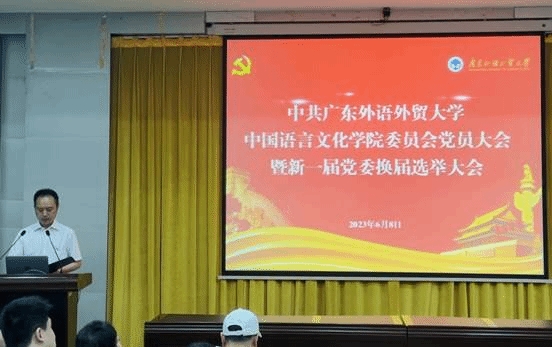 本网迅 6月8日下午,我院在白云山校区七教水上报告厅举行中国共产党广东外语外贸大学中国语言文化学院委员会党员大会,会议审议通过了党委书记谢秀兰代表学院党委所作的工作报告,选举产生了学院新一届党委委员。学院全体党员出席本次大会,会议由学院党委副书记吴俊峰主持。
