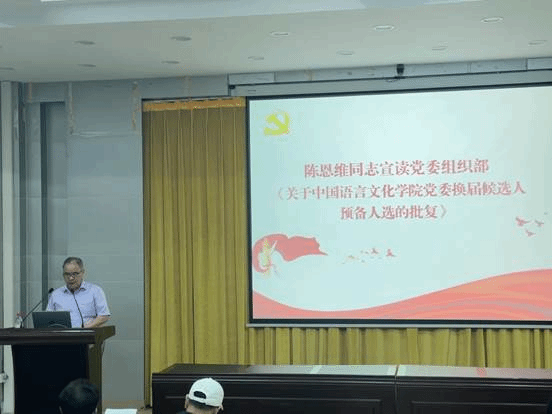 接下来,学院党委副书记、院长陈恩维同志宣读校党委组织部《关于中国语言文化学院党委换届候选人预备人选的批复》。大会表决通过了新一届党委委员候选人预备人选。