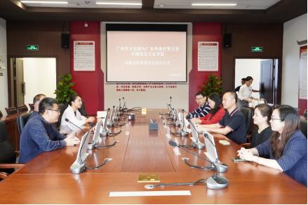 仪式结束后,与会双方就未来深度合作方向进行座谈。党委副书记吴俊峰表示,期待广州市文化馆方面参与十二月份由中文学院举办的“中国文化节”摊位展示,推动非遗文化在广外校园里进一步传播。广州市文化馆馆长董敏对吴俊峰书记的想法表示极力赞成,并提出将文化馆阵地传播优势及我校国际化特色相结合,碰撞出更多的火花和亮点,带动持续深度融合,建立长期深度合作战略。