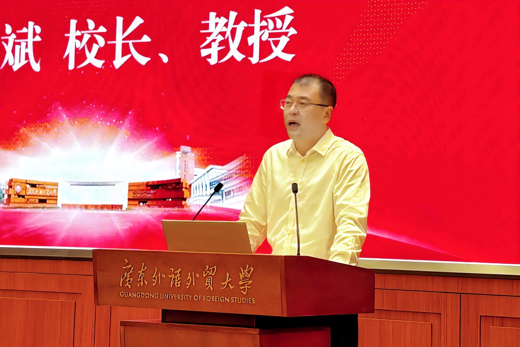 广东外语外贸大学校长闫相斌教授做开幕式致辞。闫校长表示:在当今时代的快速变革中,国际中文教育与中华文化国际传播同时面临机遇与挑战。学界要探索适应新时代需求的国际中文教育与中华文化国际传播新理念、新视角与新方法,为中华文化更好走向世界提供理论支撑,共同构建开放创新、互学互鉴的国际中文教育与中华文化国际传播新生态。