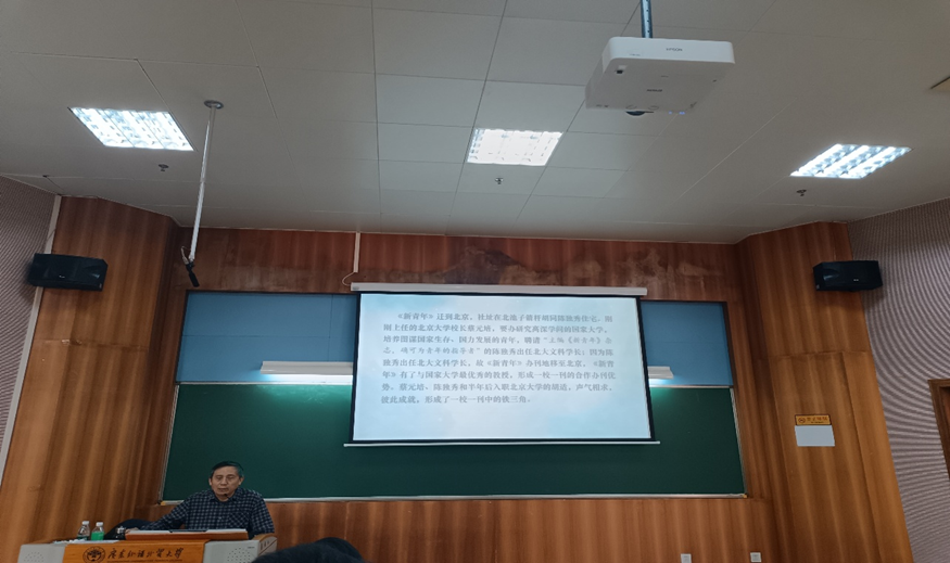 本网讯 2025年11月21日上午,中文学院院庆系列讲座第16讲在白云山校区第七教学楼107室举行。本次讲座邀请河南大学关爱和教授作题为《陈独秀与<新青年>的三个时代》的专题讲座,讲座由陈恩维教授主持,70余名师生参会。