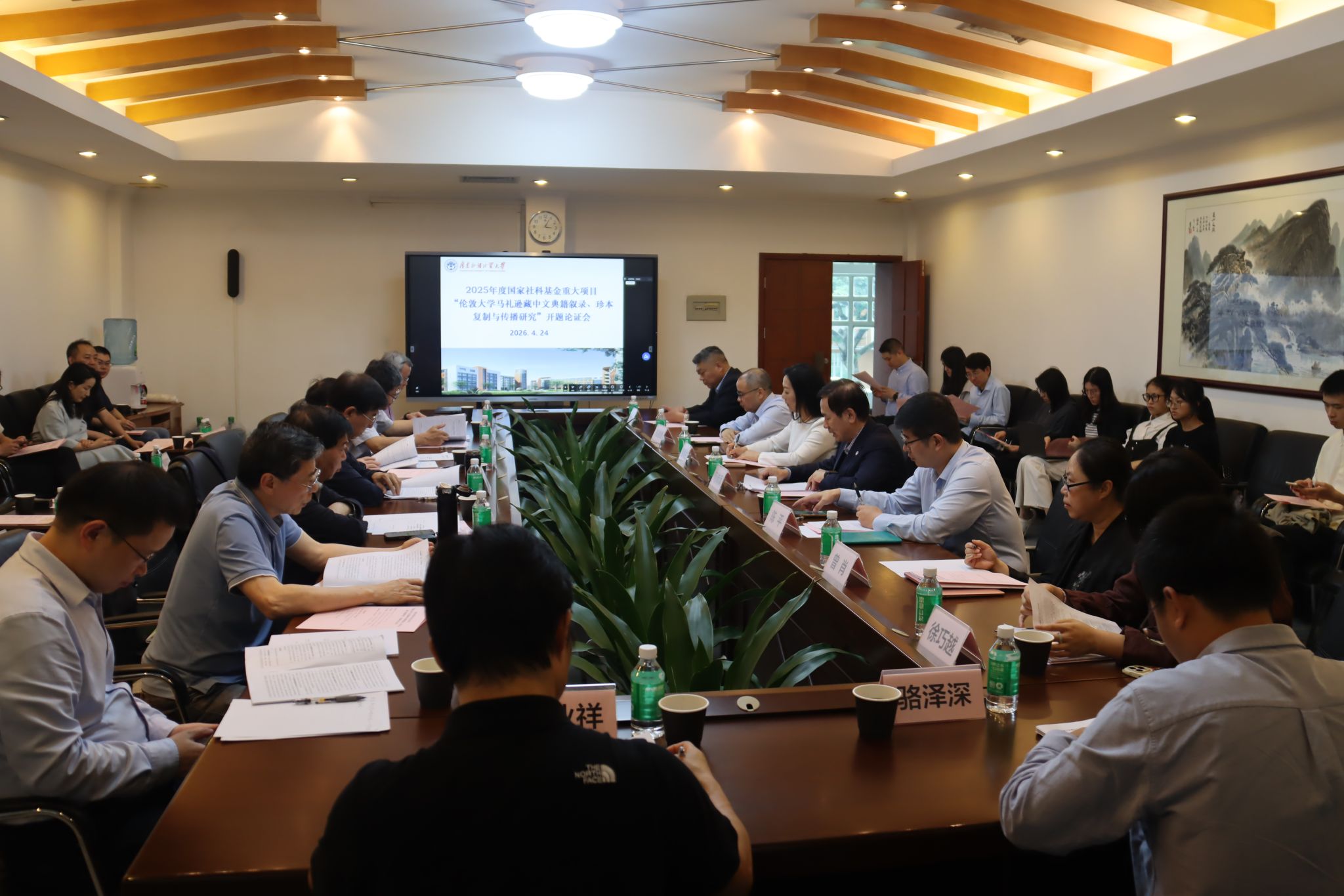 本网讯 4月24日,国家社科基金重大项目“伦敦大学马礼逊藏中国典籍叙录、珍本复制与传播研究”开题论证会在我校举行。校党委常委、副校长何传添教授,及来自全国多所院校、科研机构的专家学者出席了会议。会议由发展规划部、科研部部长陈平主持。